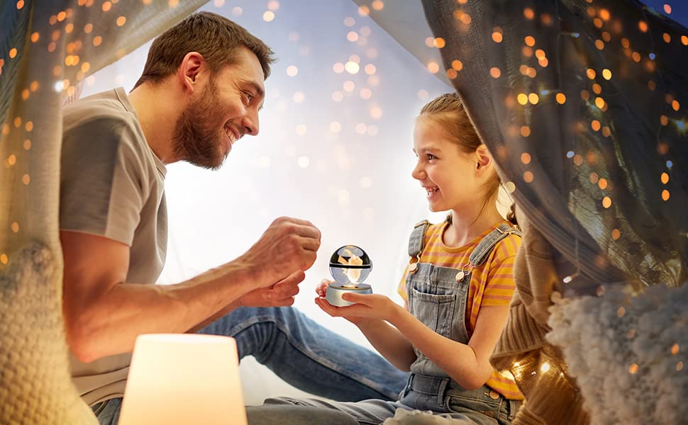 This process allows the section which has been laser engraved to allow light to be concentrated within it and enables the gorgeous glowing effect when the ball is placed on the Rotating LED base or even in the daytime. The ball is shaped perfectly round with no bumps or bulges and has an incredible feel to the touch when held!